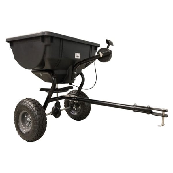 The 85lb towed broadcast spreader from Agri-Fab has a fully enclosed gear case for longer working life. even at higher towing speeds.